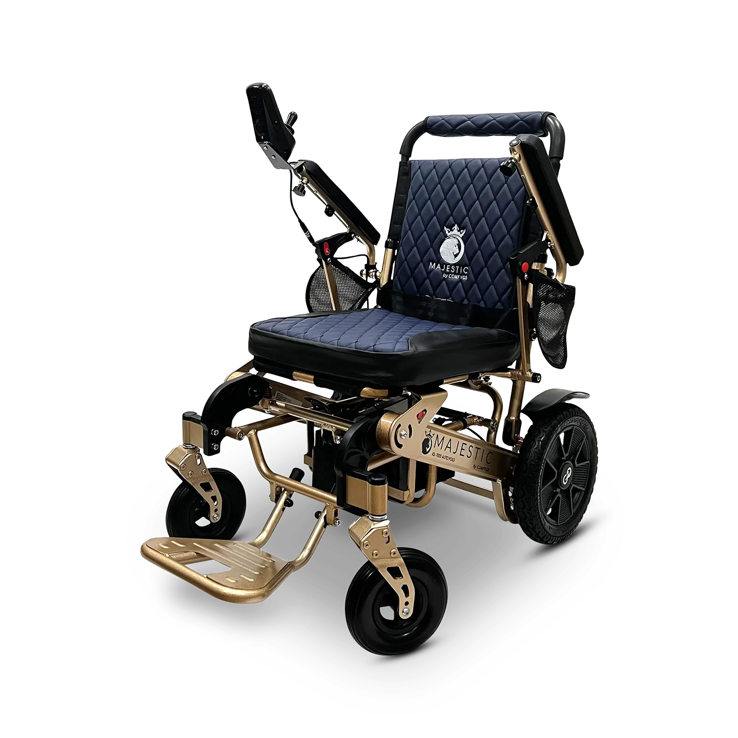 Purchased the non reclining version. A structural engineered chair with great battery life. Very compact and easy to fold. I like the optional extra width and the seat is very comfortable. The controller is easy to attach and allows for precise use of the joystick. I do wish it had a locking security mechanism or key lock if you have to leave the wheelchair unattended.
